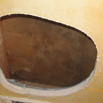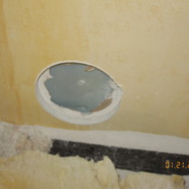 Sie sehen eine Öffnung im Gipskarton noch mit grauer Folie